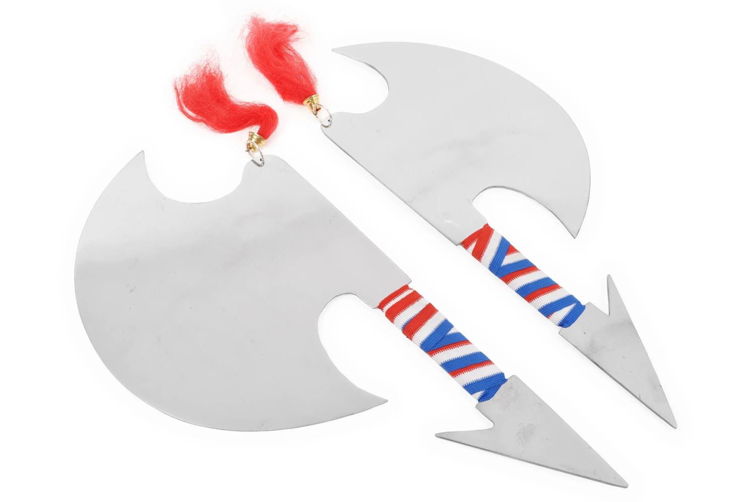 Couteaux dont la forme de la lame Ă©voque celle du canard mandarin. Arme de poings, s’utilise par paire.