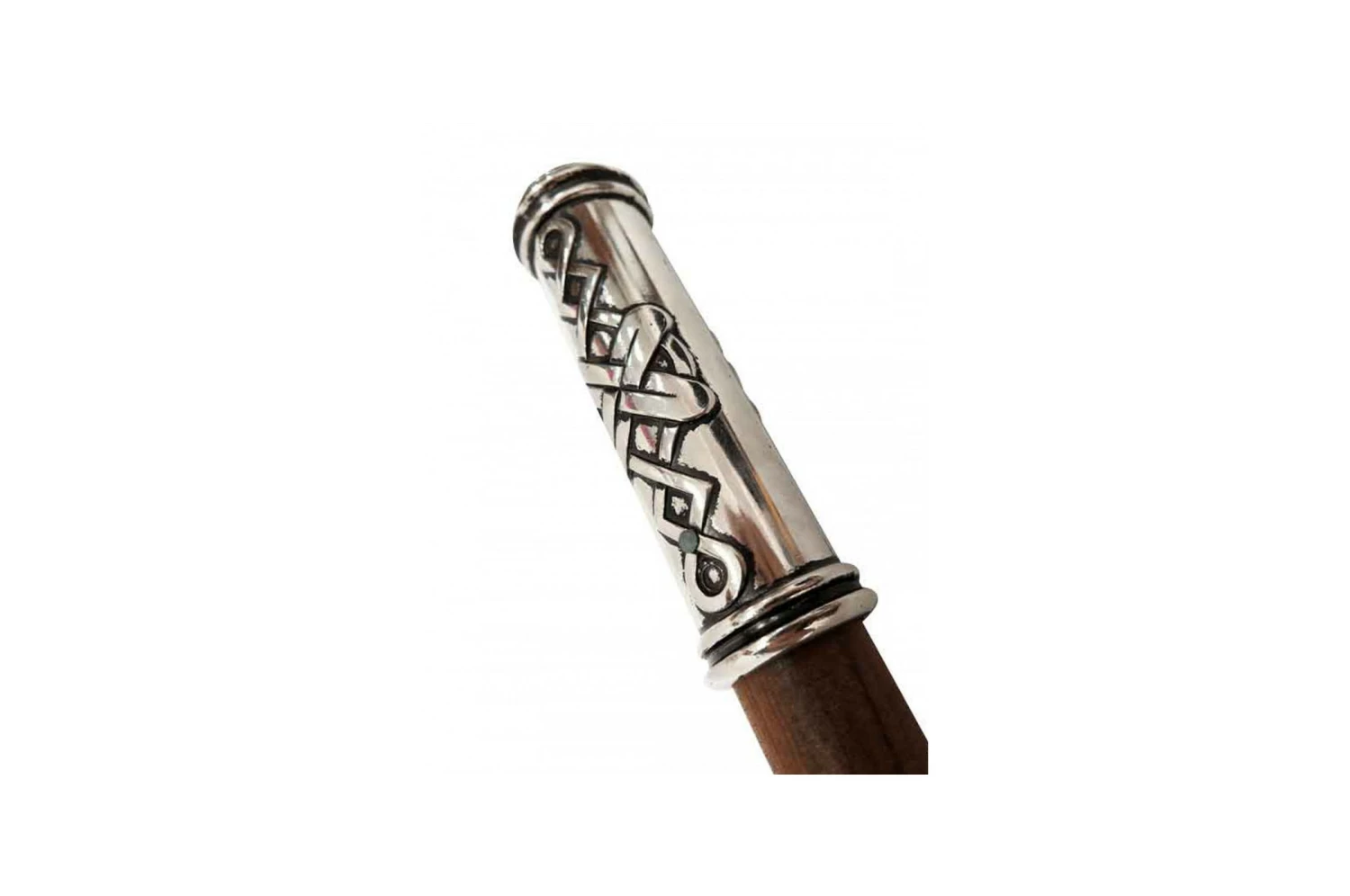 Cette arme possède une large lame en métal, rigide et non aiguisée. Des gravures décorent les deux faces de cette lame.