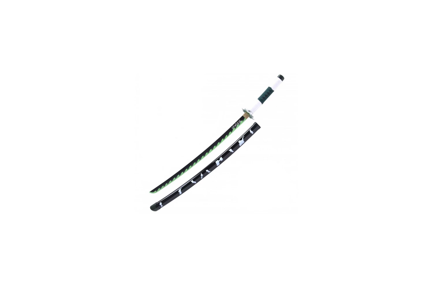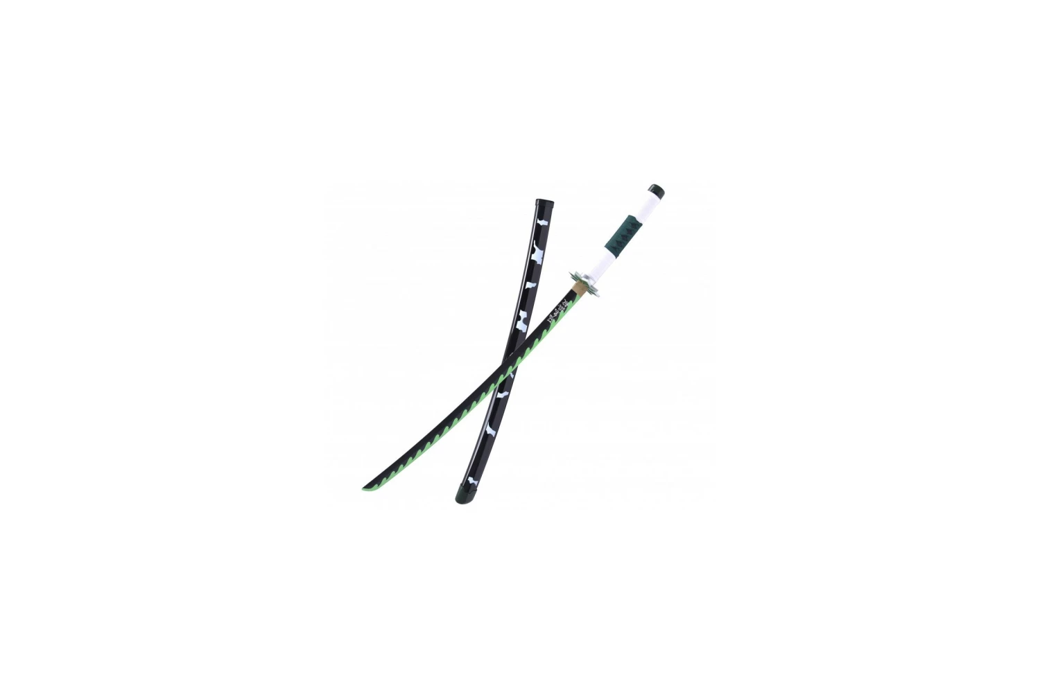 Ce katana vert foncé, noir et blanc est l’arme utilisée par le personnage de Sanemi Shinazugawa, dans l’animé/manga Demon Slayer. C’est un Pourfendeur de démons et le Pilier du Vent. Faite à partir de bois de bambou, ce katana est idéal pour le cosplay, votre collection ou la décoration de vos pièces !