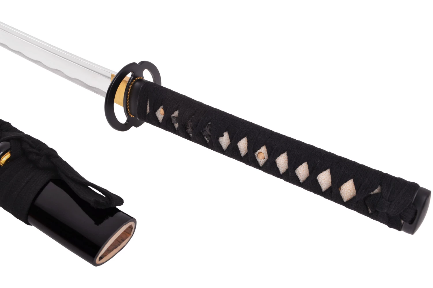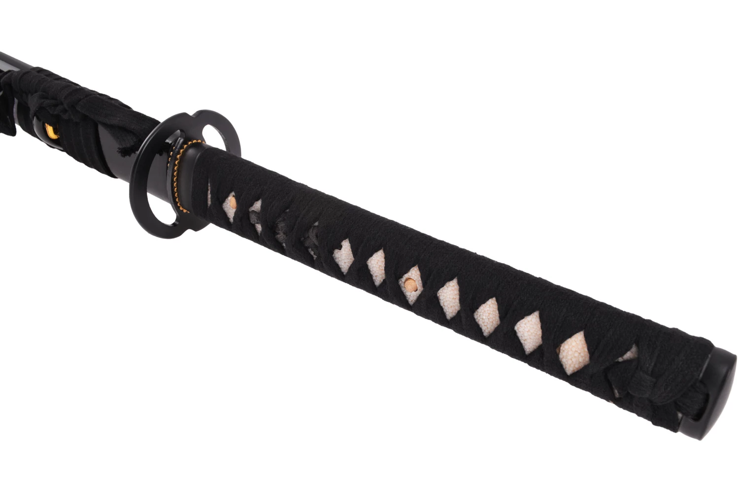- Manche (Tsuka) avec tressage noir et imitation peau de raie blanche