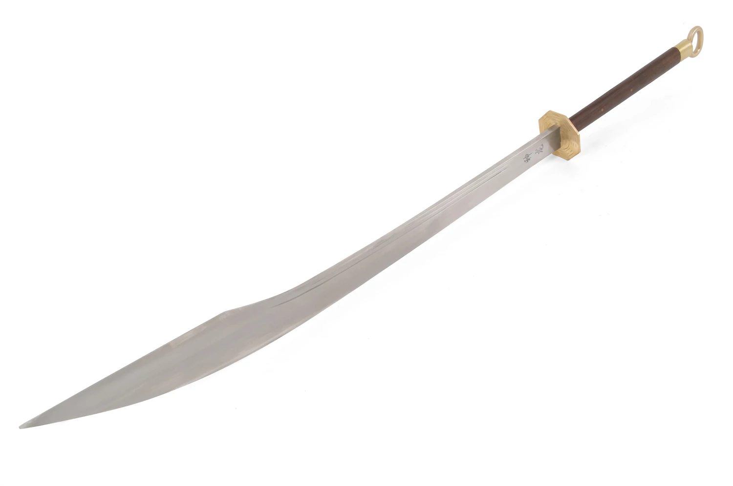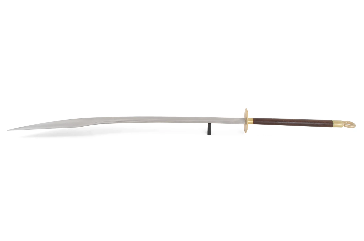 Grand sabre à lame en acier forgé très résistant, conçu pour la pratique du «Ba Gua Dao» ou «Ba Gua Qian Kun» (Sabre, style interne). Forgé à Longquan, une arme de très haute qualité, avec de belles finitions, destinée aux pratiquants les plus exigeants et expérimentés.