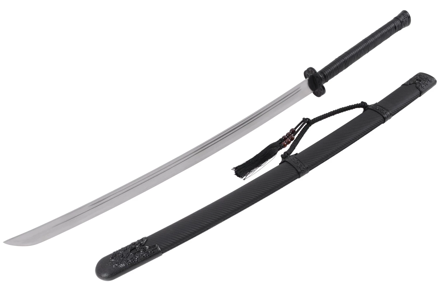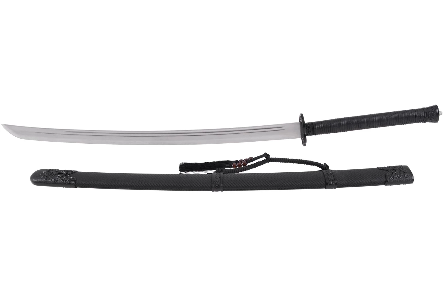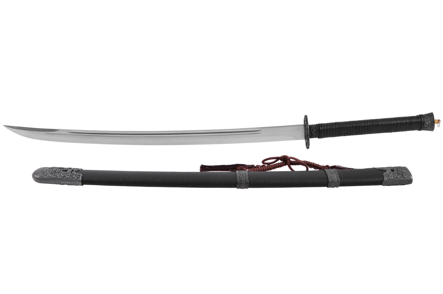 Sabre Qing (sabre de la dynastie Qing) à lame rigide en acier manganèse, de belle finition.