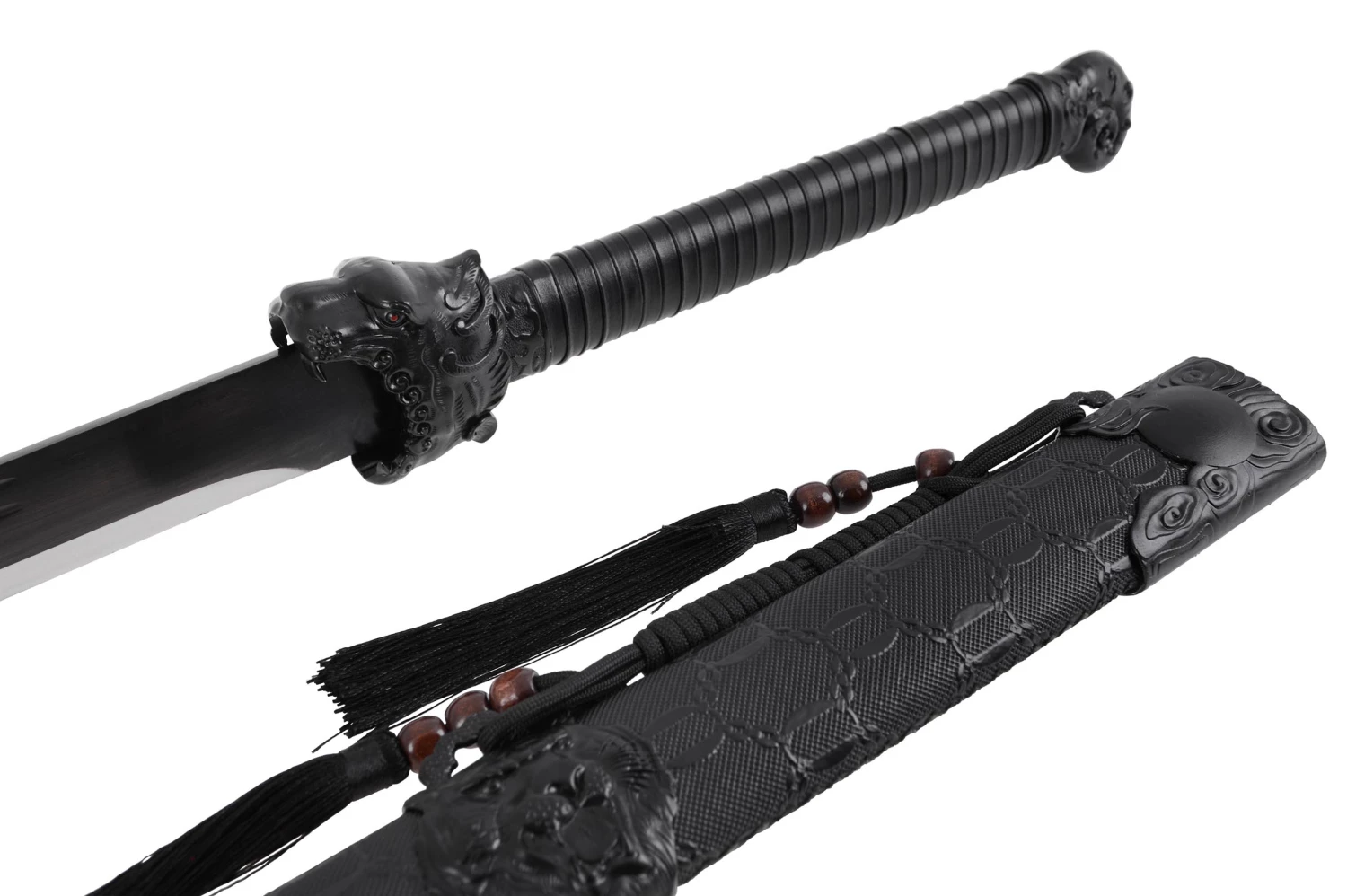 Il est sublimé d’ornements noirs en forme de tête de tigre qui s’intègrent parfaitement et discrètement au fourreau.