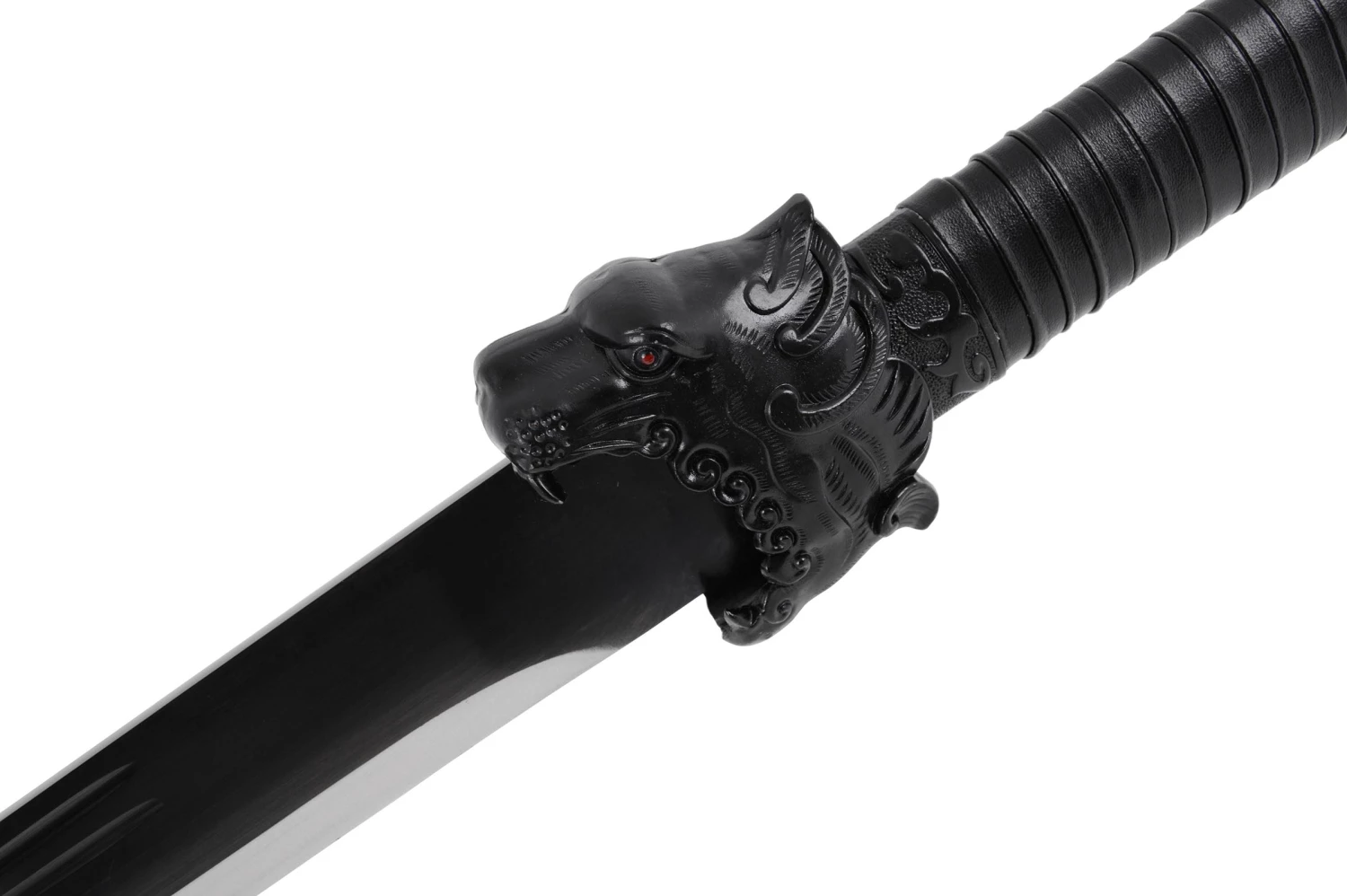 - Garde en métal noir en forme de tête de tigre mordant la lame