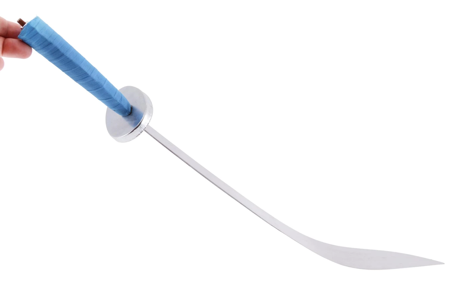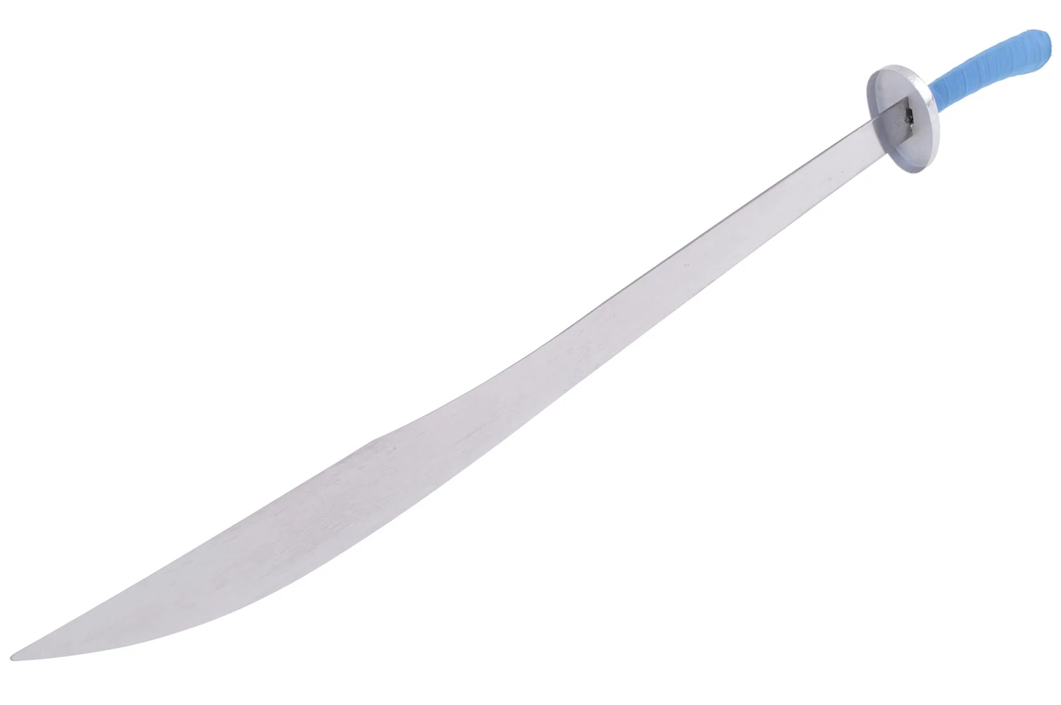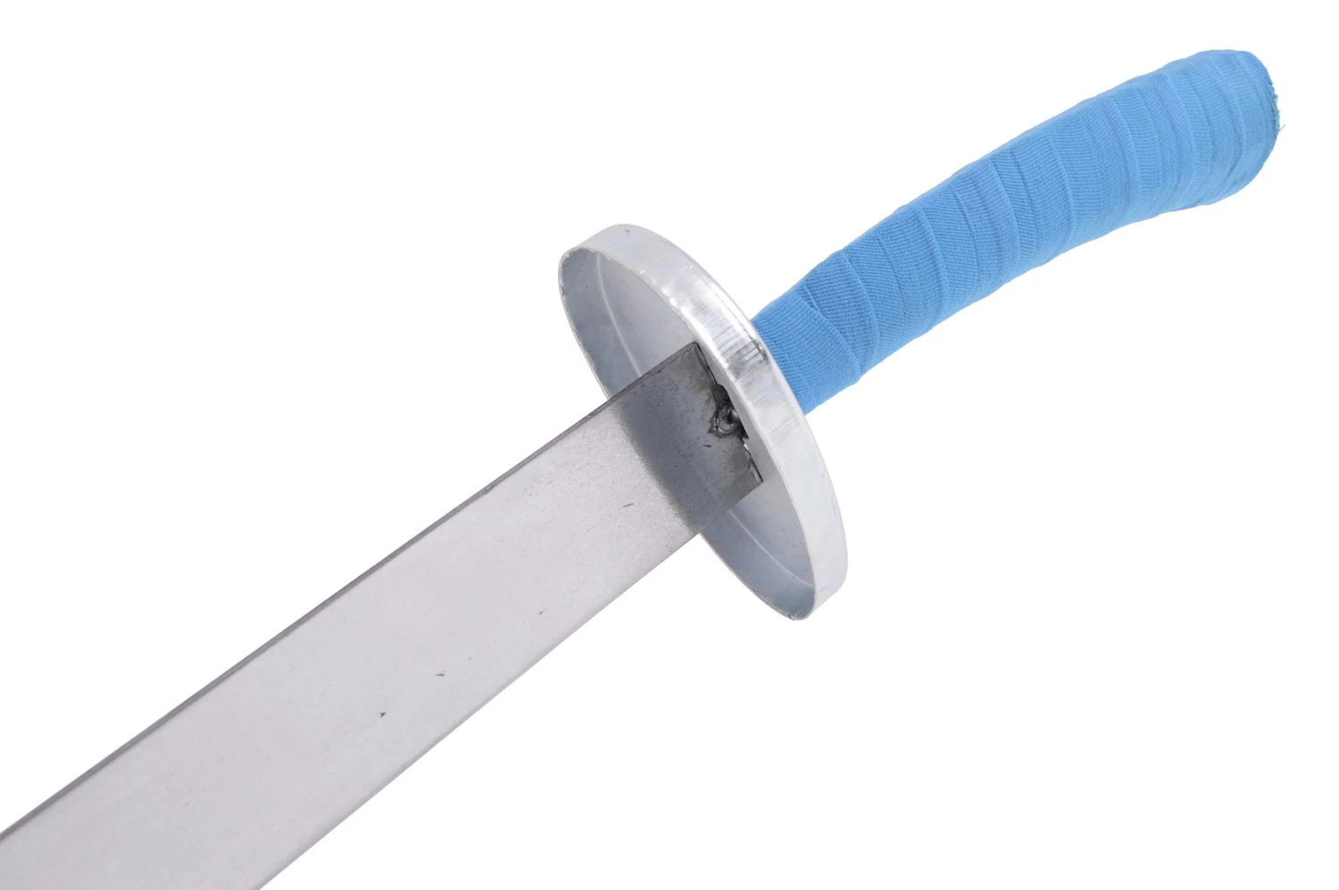 Sabre à lame flexible de type moderne (claquement sonore), poignée faite d’une seule pièce de métal creux faisant caisse de résonance (augmente effet sonore du claquement).
